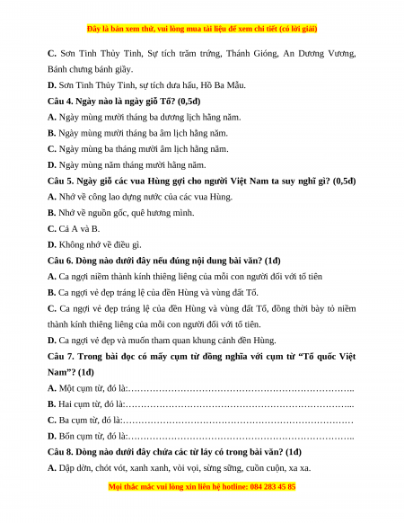 Câu 5. Ngày giỗ các vua Hùng gợi cho người Việt Nam ta suy nghĩ gì? (0,5đ)