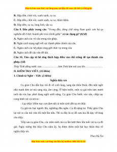 Câu 7. Trong bài đọc có mấy cụm từ đồng nghĩa với cụm từ “Tổ quốc Việt Nam”? (1đ)