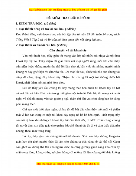 Đề thi cuối kì 2 Tiếng Việt lớp 5 năm 2023 (Đề 20)