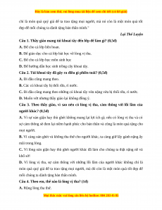 Câu 6. Bài học: Sống phải có lòng vị tha, cảm thông, chia sẻ và không gây thù