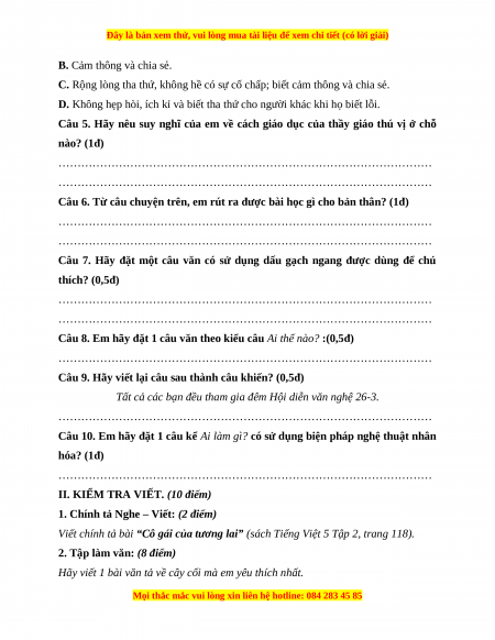 Đây là bản xem thử, vui lòng mua tài liệu để xem chi tiết (có lời giải)