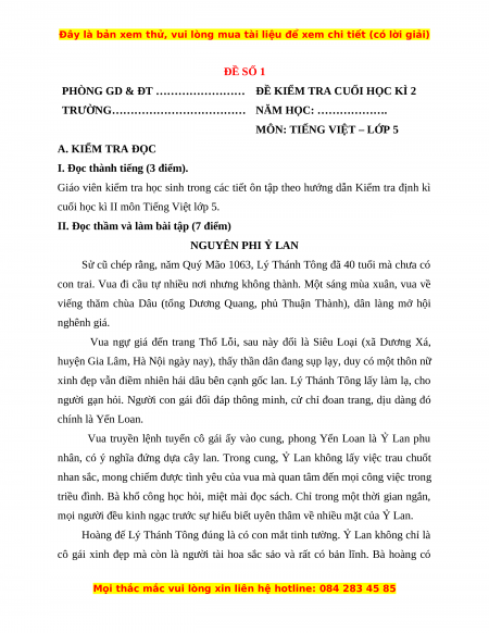 cuối học kì II môn Tiếng Việt lớp 5.