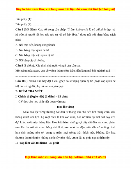 Câu 10 (1 điểm). Em hãy đặt 1 câu ghép có sử dụng quan hệ từ (hoặc cặp quan hệ