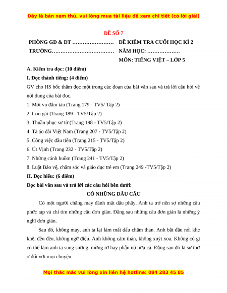Đề thi cuối kì 2 Tiếng Việt lớp 5 năm 2023 (Đề 27)
