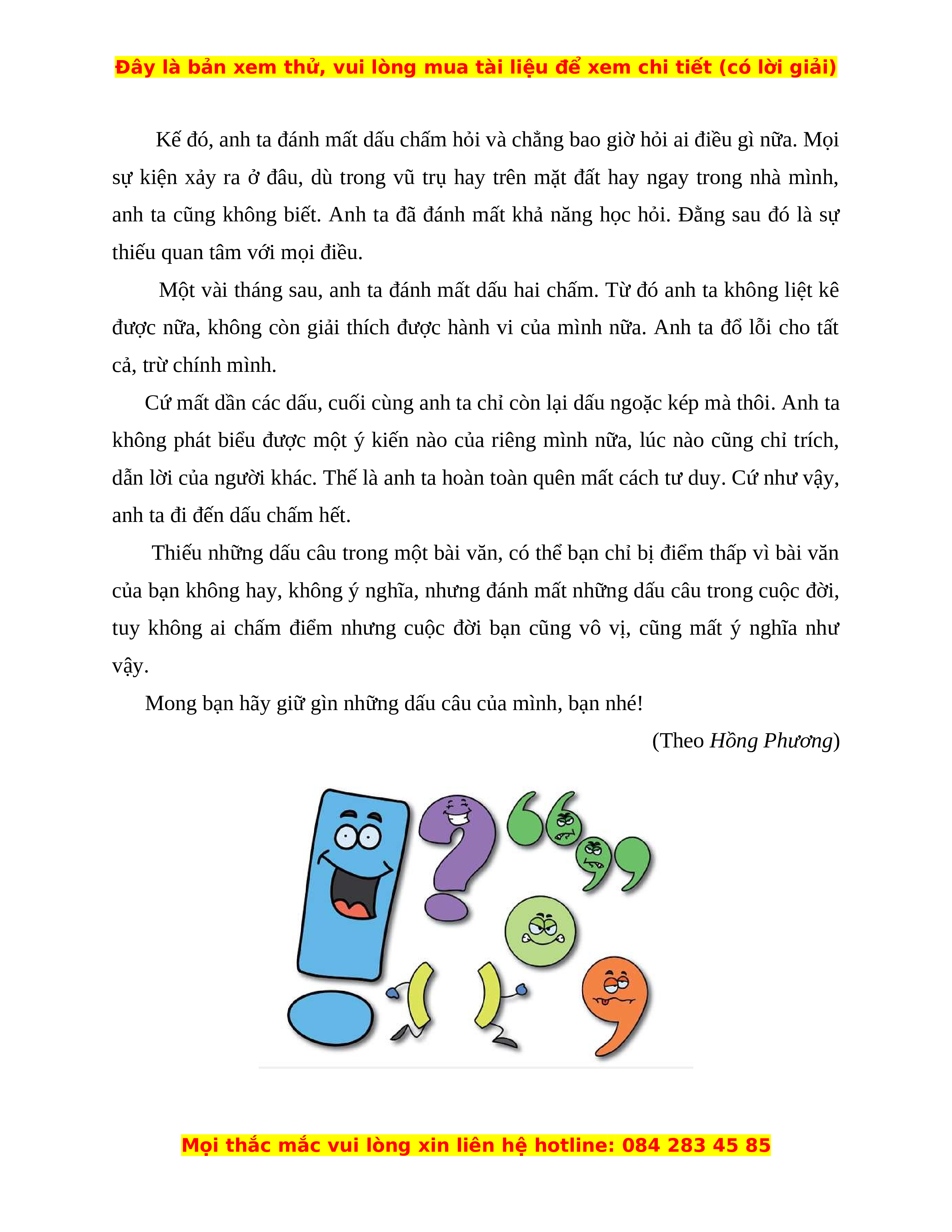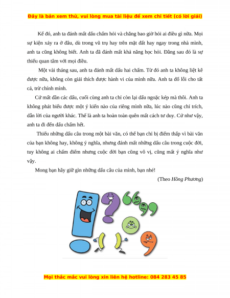 Đọc bài văn sau và trả lời các câu hỏi bên dưới: CÓ NHỮNG DẤU CÂU