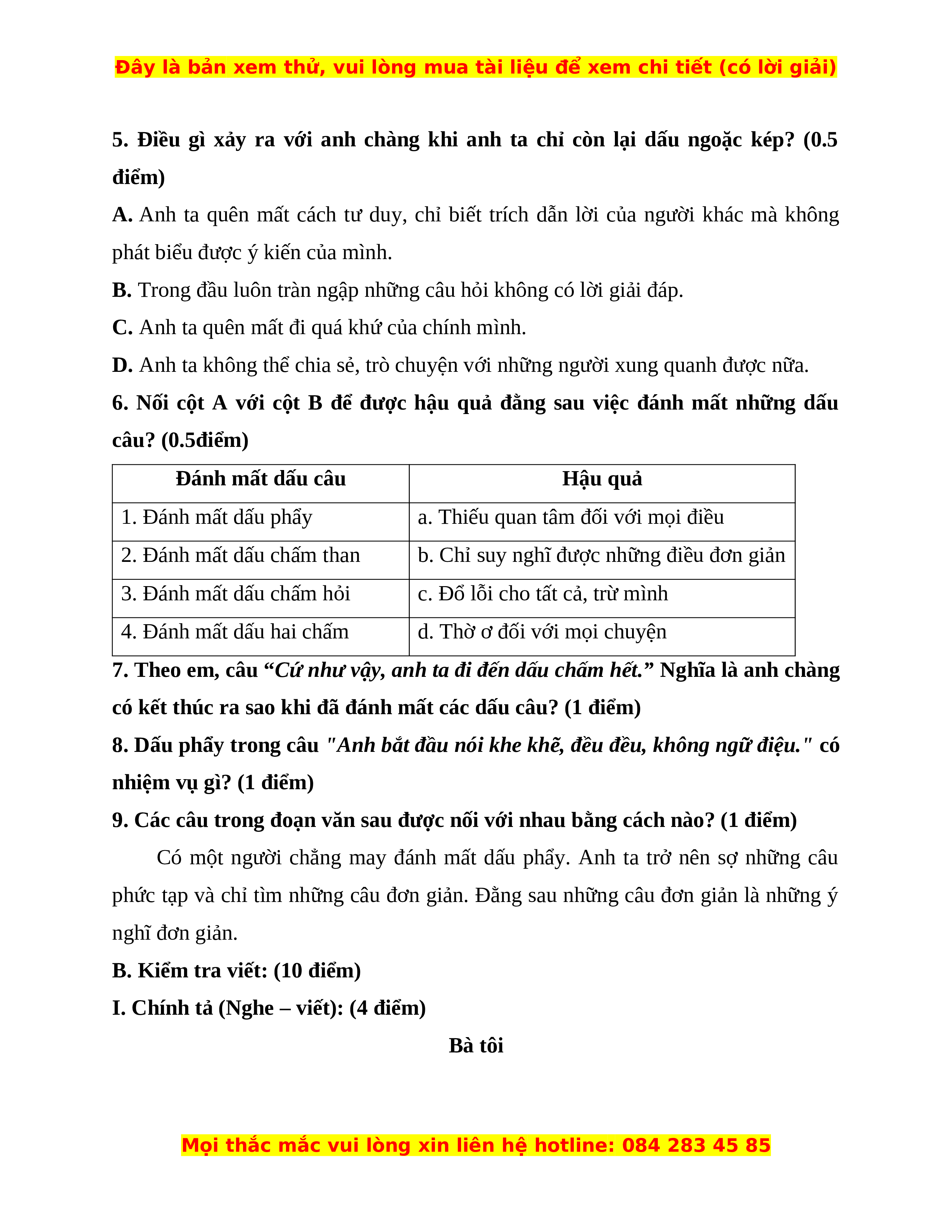 5. Điều gì xảy ra với anh chàng khi anh ta chỉ còn lại dấu ngoặc kép? (0.5 điểm)