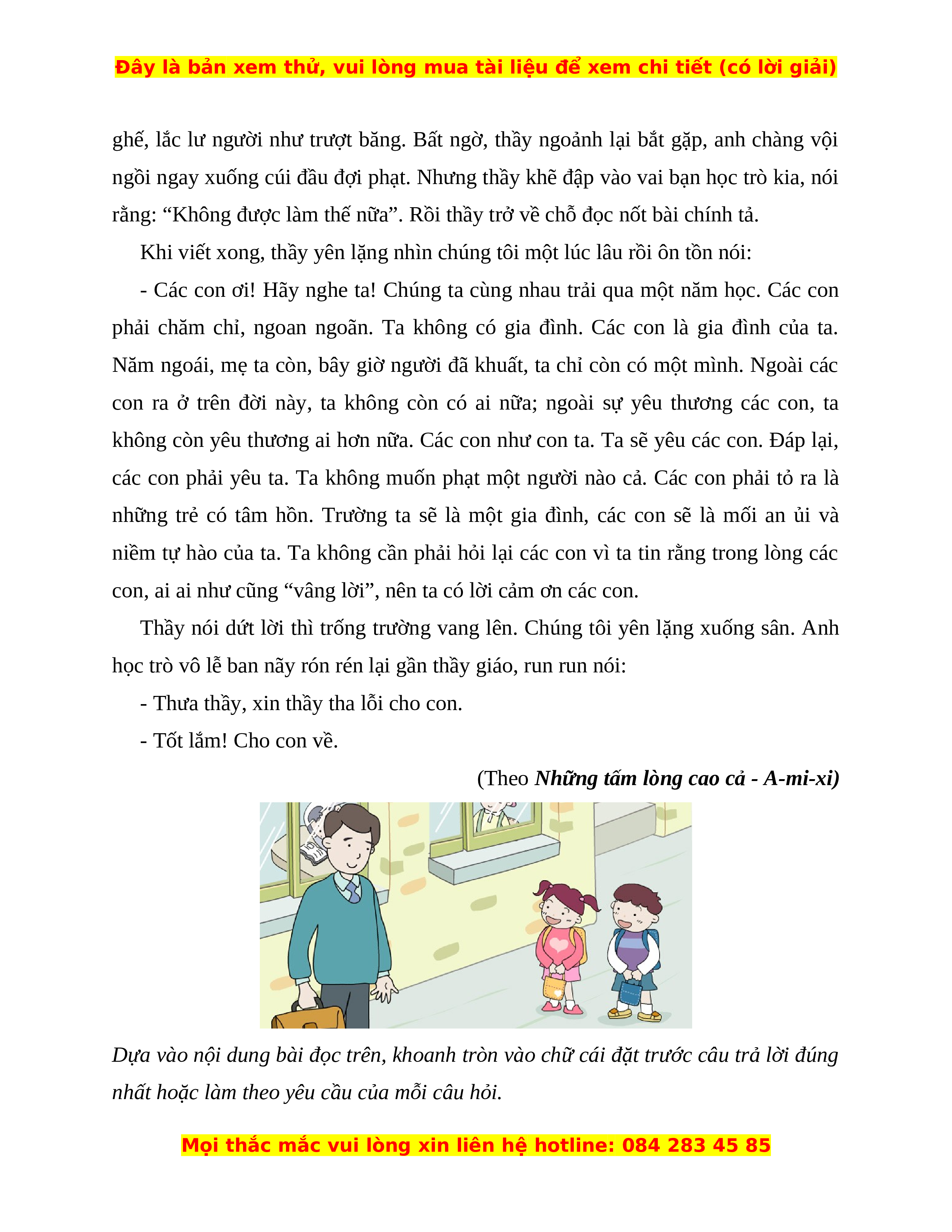 ngồi ngay xuống cúi đầu đợi phạt. Nhưng thầy khẽ đập vào vai bạn học trò kia, nói