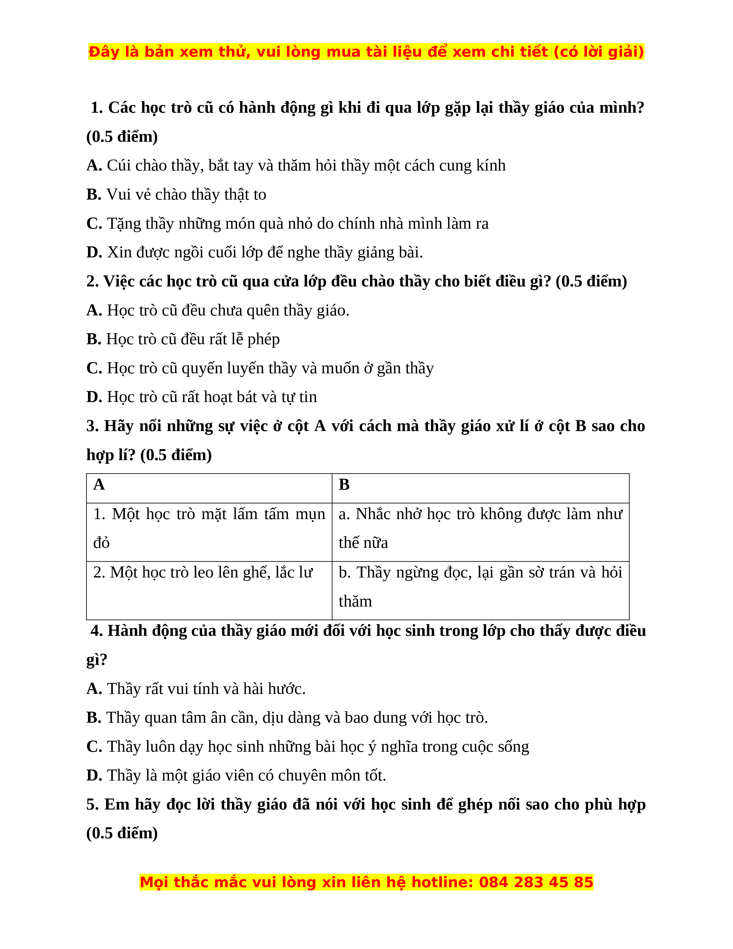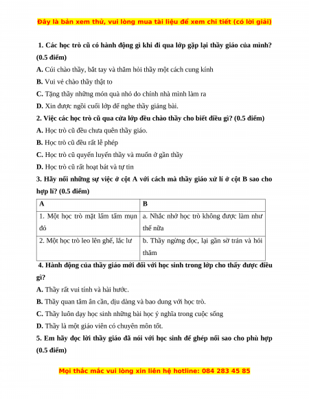 5. Em hãy đọc lời thầy giáo đã nói với học sinh để ghép nối sao cho phù hợp (0.5 điểm)