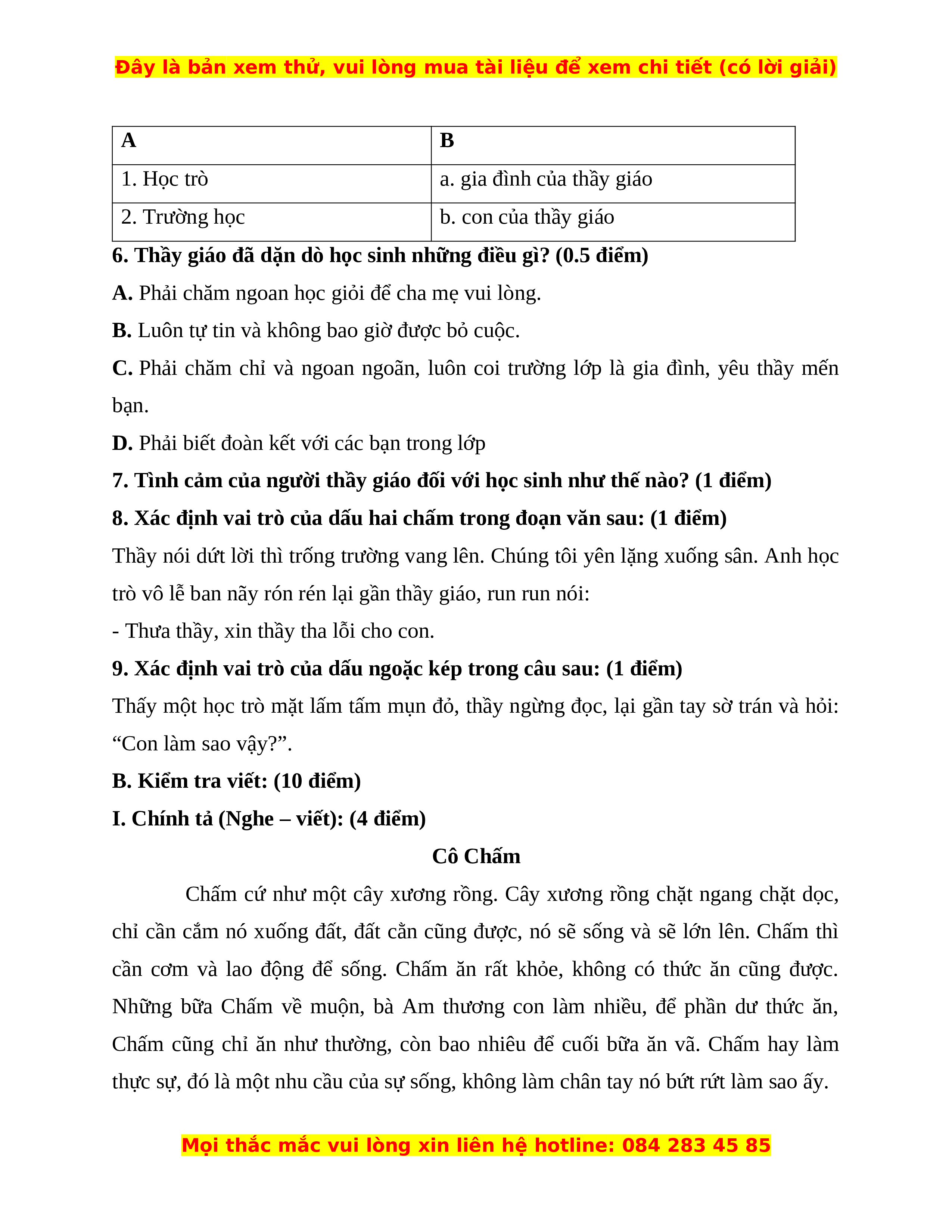 I. Chính tả (Nghe – viết): (4 điểm) Cô Chấm