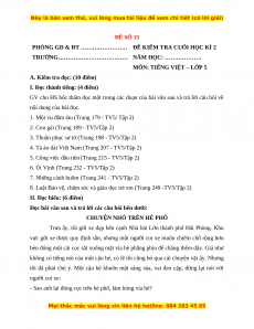 - Tailieugiaovien.com.vn giới thiệu bộ đề thi cuối kì 2 môn Tiếng Việt lớp 5 bao gồm 40 đề mới nhất năm 2022 - 2023 nhằm giúp Giáo viên có thêm tài liệu tham khảo ra đề thi Tiếng Việt lớp 5.