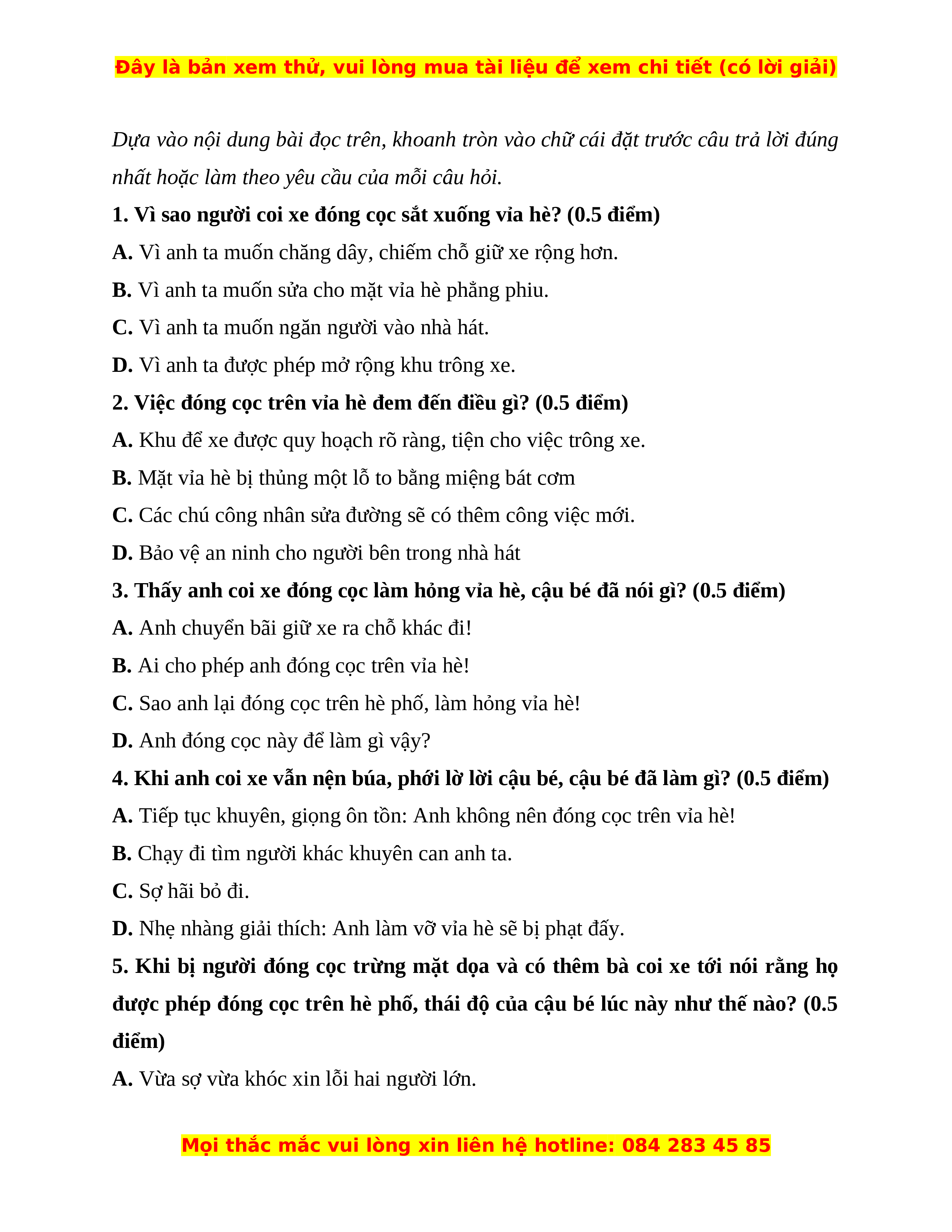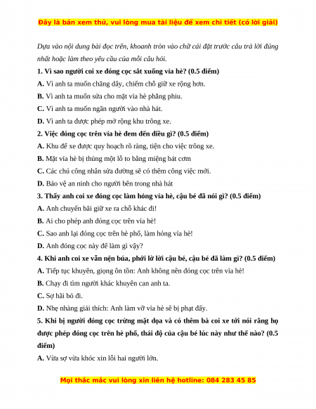 Đây là bản xem thử, vui lòng mua tài liệu để xem chi tiết (có lời giải)