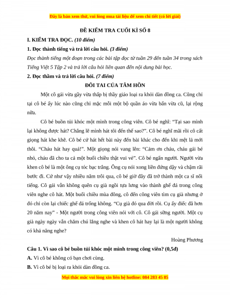 Đề thi cuối kì 2 Tiếng Việt lớp 5 năm 2023 (Đề 8)