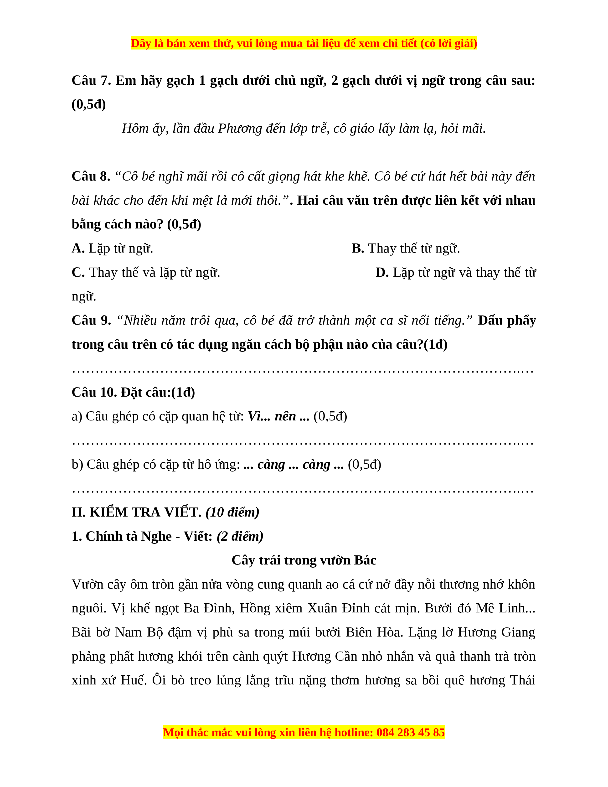 Đây là bản xem thử, vui lòng mua tài liệu để xem chi tiết (có lời giải)