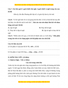 Câu 7. Em hãy gạch 1 gạch dưới chủ ngữ, 2 gạch dưới vị ngữ trong câu sau: (0,5đ)
