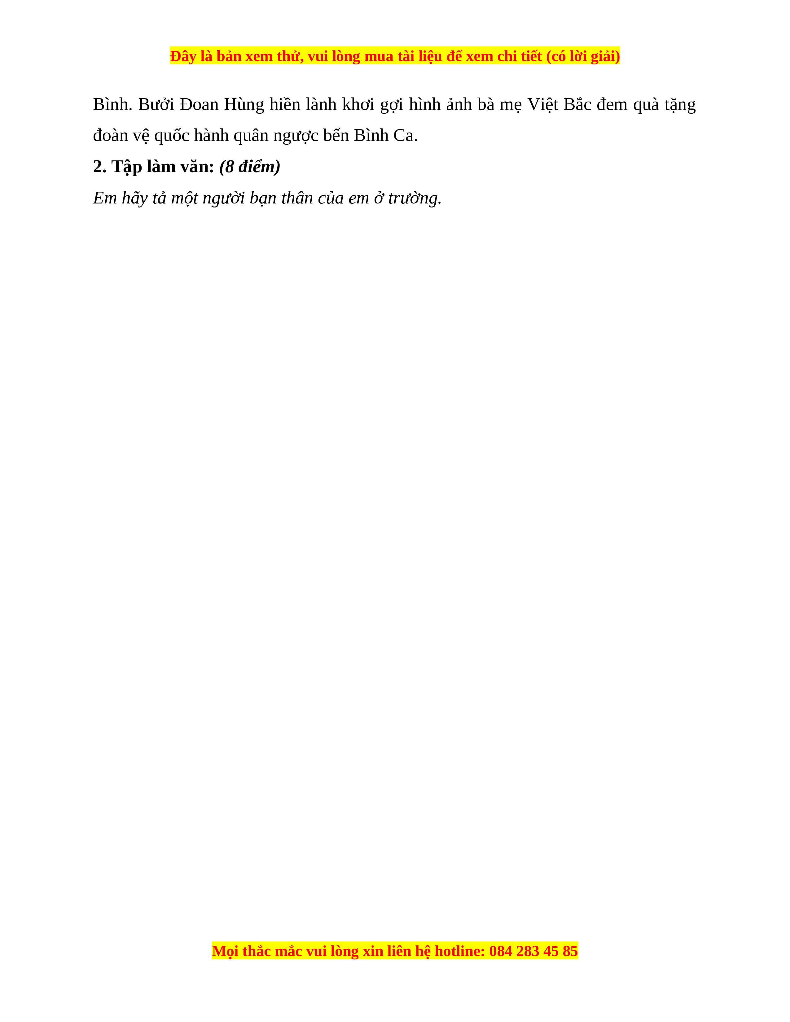 2. Tập làm văn: (8 điểm)