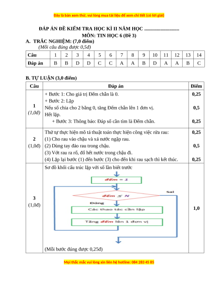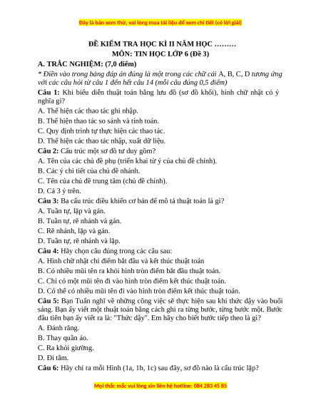 MÔN: TIN HỌC LỚP 6 (Đề 3)