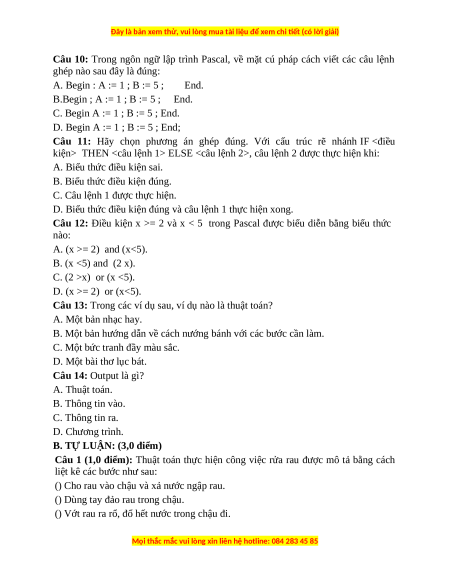 Câu 10: Trong ngôn ngữ lập trình Pascal, về mặt cú pháp cách viết các câu lệnh
