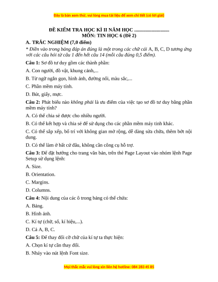 MÔN: TIN HỌC 6 (Đề 2)