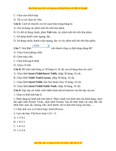 Câu 11: Trong các thao tác dưới đây, thao tác nào không phải là thao tác định dạng đoạn văn bản?