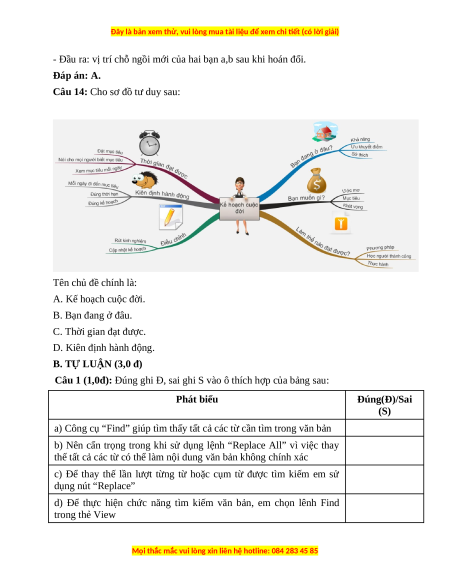 Câu 14: Cho sơ đồ tư duy sau: Tên chủ đề chính là: A. Kế hoạch cuộc đời. B. Bạn đang ở đâu.