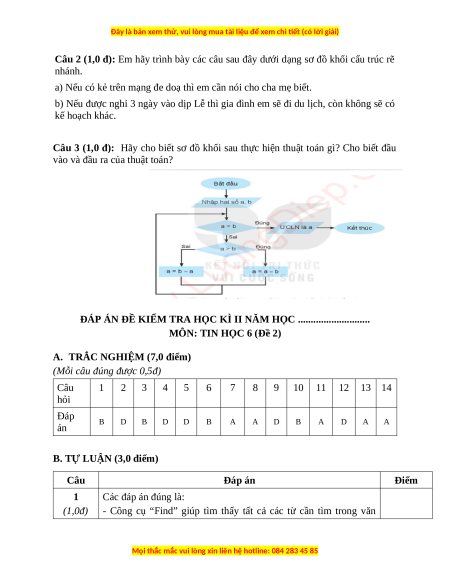 Câu 3 (1,0 đ): Hãy cho biết sơ đồ khối sau thực hiện thuật toán gì? Cho biết đầu