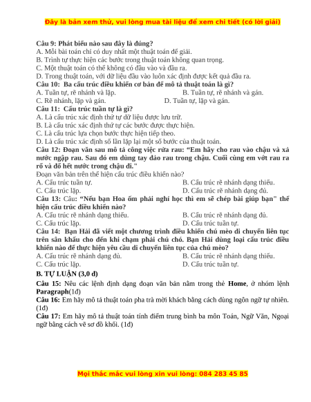 Đây là bản xem thử, vui lòng mua tài liệu để xem chi tiết (có lời giải)