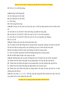 Câu 10. Trong các bài toán sau bài toán nào có thể áp dụng thuật toán tìm kiếm tuần tự: