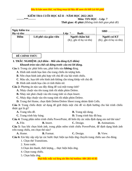 - Tailieugiaovien.com.vn giới thiệu bộ đề thi cuối kì 2 Tin học lớp 7 Cánh diều mới nhất nhằm giúp Giáo viên có thêm tài liệu tham khảo ra đề thi Tin học lớp 7.