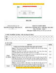 ĐÁP ÁN VÀ BIỂU ĐIỂM
