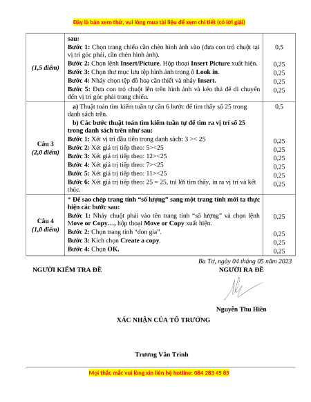 Câu 4: (1,0 điểm) Em hãy chỉ ra các bước để thực hiện việc sao chép trang tính “so luong” sang