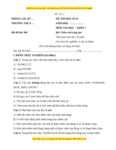MÔN TIN HỌC – KHỐI 7 Mã đề thi: 001