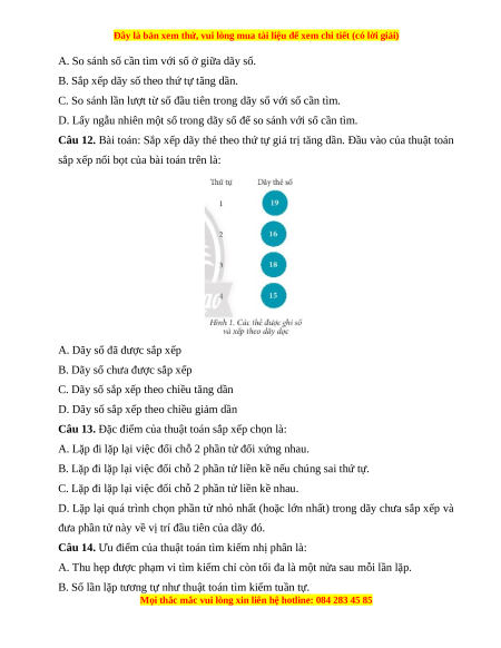 Câu 11. Để tìm kiếm một số trong dãy số bằng thuật toán tìm kiếm tuần tự, ta thực hiện: