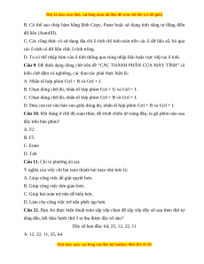 Câu 10. Khi đang ở chế độ soạn thảo, để trình chiếu từ trang đầu, ta gõ phím nào sau đây trên bàn phím? A. F2 B. F5 C. Enter D. Tab