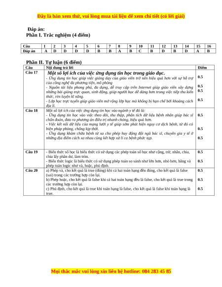 Câu 17: (2 điểm) Em hãy nêu một số lợi ích của việc ứng dụng tin học trong giáo dục.