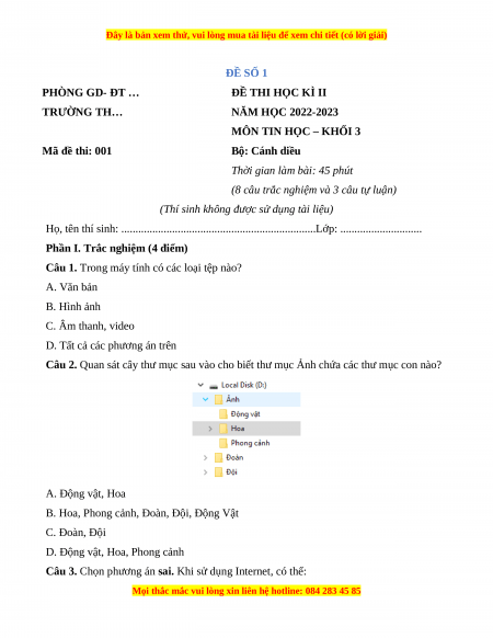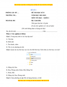 MÔN TIN HỌC – KHỐI 3 Mã đề thi: 001 Bộ: Cánh diều