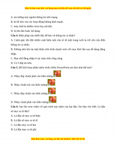 Câu 1. Trong máy tính có các loại tệp nào? A. Văn bản B. Hình ảnh C. Âm thanh, video