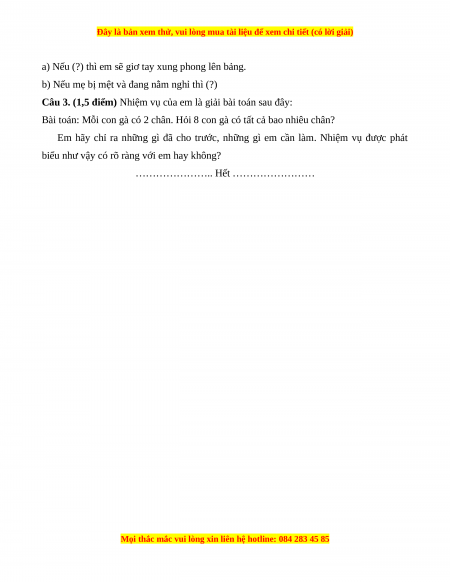 Câu 3. (1,5 điểm) Nhiệm vụ của em là giải bài toán sau đây: