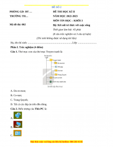 MÔN TIN HỌC – KHỐI 3 Mã đề thi: 002
