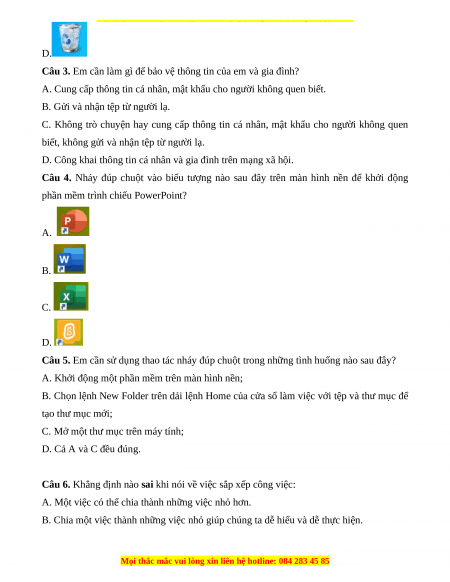 Câu 4. Nháy đúp chuột vào biểu tượng nào sau đây trên màn hình nền để khởi động