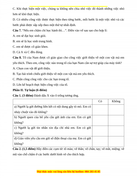 Đề thi cuối kì 2 Tin học lớp 3 Kết nối tri thức (Đề 2)