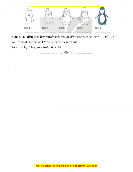 Câu 3. (1,5 điểm) Em hãy chuyển mỗi câu sau đây thành cách nói “Nếu … thì …”:
