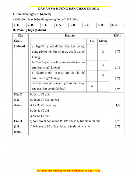 ĐÁP ÁN VÀ HƯỚNG DẪN CHẤM ĐỀ SỐ 2