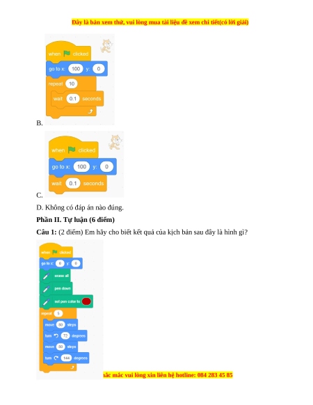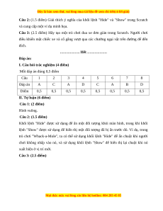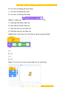 Câu 1. Khối lệnh nào cho phép ta di chuyển nhân vật? A. Motion. B. Looks. C. Sound. D. Events.