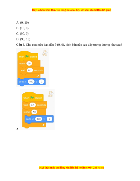 Câu 8. Cho con mèo ban đầu ở (0, 0), kịch bản nào sau đây tương đương như sau? A.