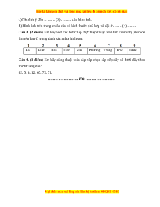 Câu 12. Dùng thuật toán sắp xếp nổi bọt để sắp xếp một dãy số tăng dần. Mỗi vòng