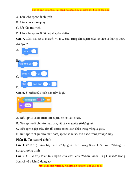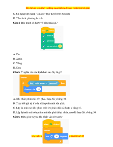 Câu 1: (2 điểm) Trình bày cách sử dụng các biến trong Scratch để lưu trữ thông tin trong chương trình.