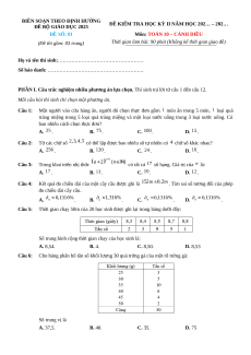 Số trung bình cộng thời gian chạy của học sinh là: A. 8,54. B. 4. C. 8,50. D. 8,53 Câu 6: