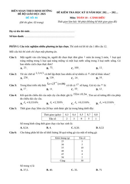 ĐỀ BỘ GIÁO DỤC 2025 ĐỀ SỐ: 01
