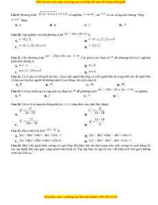 Câu 24. Tổng các nghiệm nguyên của phương trình bằng