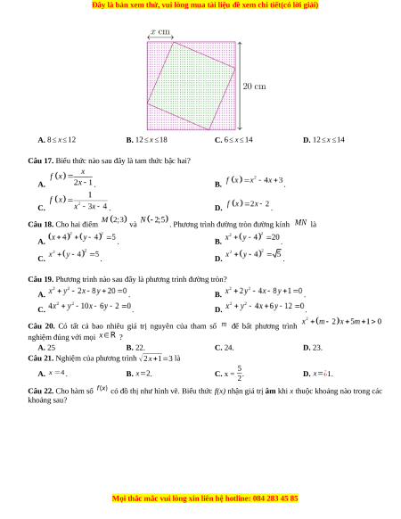 Câu 19. Phương trình nào sau đây là phương trình đường tròn? A. . B. . C. . D. .
